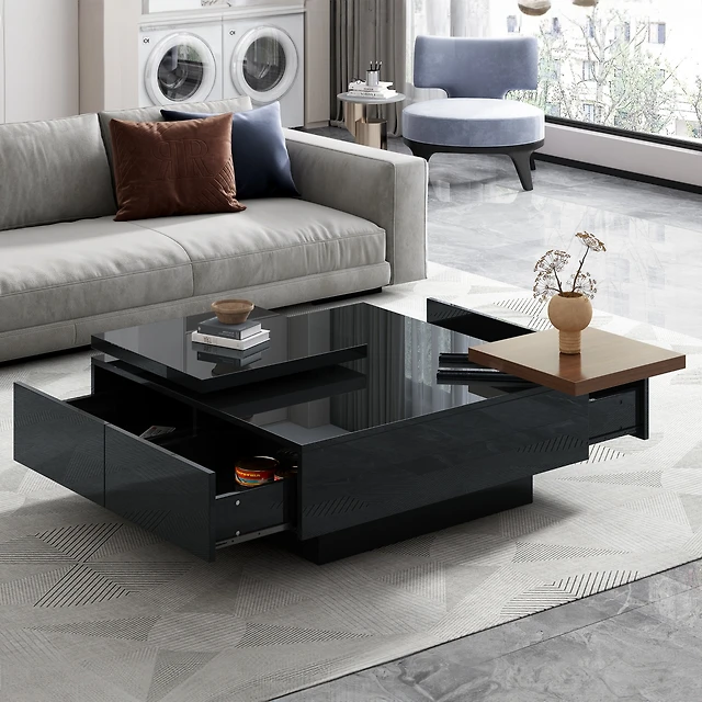 Wlive Modern Lift Top Coffee Table,Rustic Coffee Table with Storage Shelf and Hidden Compartment,Wood Lift Tabletop for Home Living Room,Black.