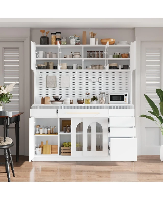 Gymax 2PCS Coffee Bar Cabinet w/Pegboard Storage Drawer & Shelf Buffet Sideboard