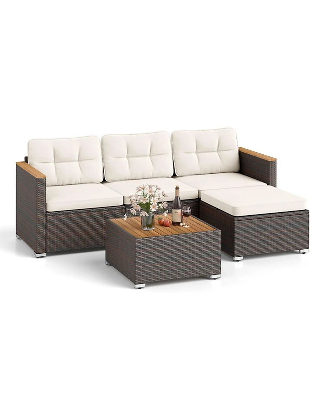 Gymax Set Of 5 Wicker Conversation Set Patio Rattan Chair and Coffee Table Set for Porch
