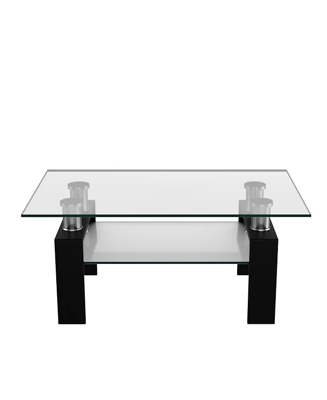 Rectangle Glass Coffee Table Metal Legs End Livingroom