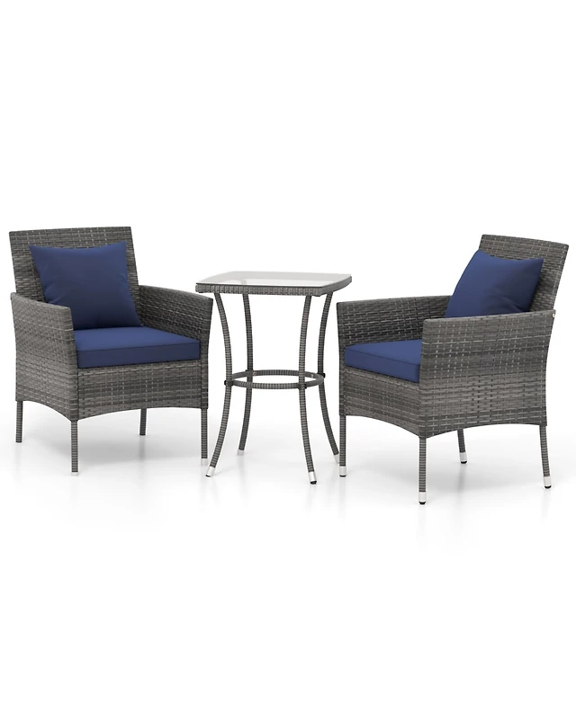 Gymax 3PCS Outdoor Patio Rattan Conversation Set Garden Yard w/ Cushions Coffee Table