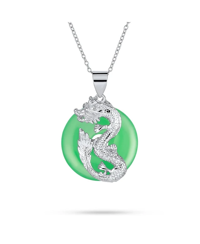 Bling Jewelry Asian Style Framed Circle Round Medallion Good Fortune Fu Character Chinese Symbol Dyed Green Jade Disc Pendant Necklace Sterling Silver