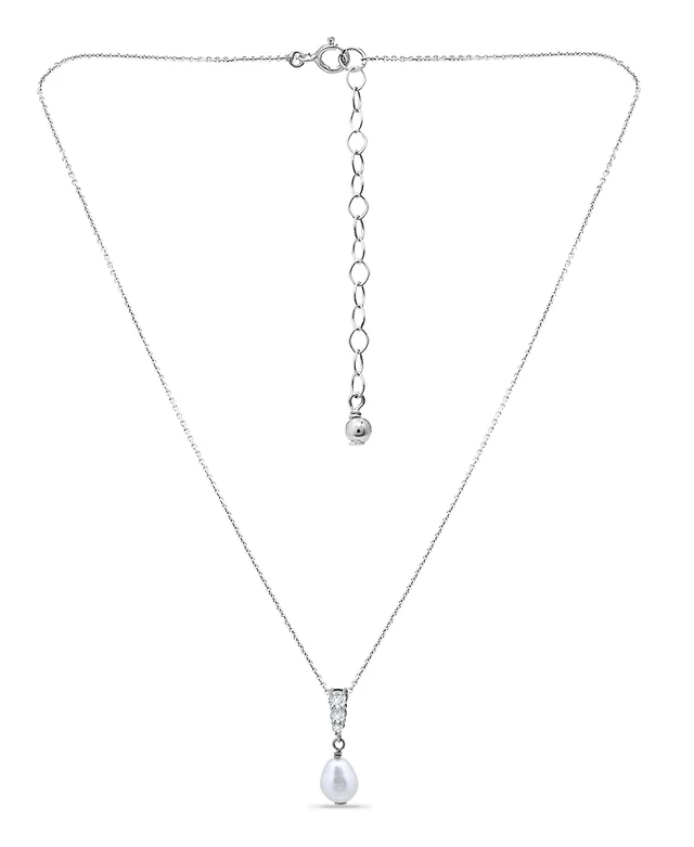 Elegant Heavy Sterling Silver Teardrop with Cubic Zirconia Accent Necklace