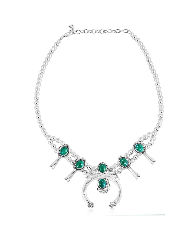 Sterling Silver Chrysocolla Squash Blossom Necklace, 17 to 20 Inches
