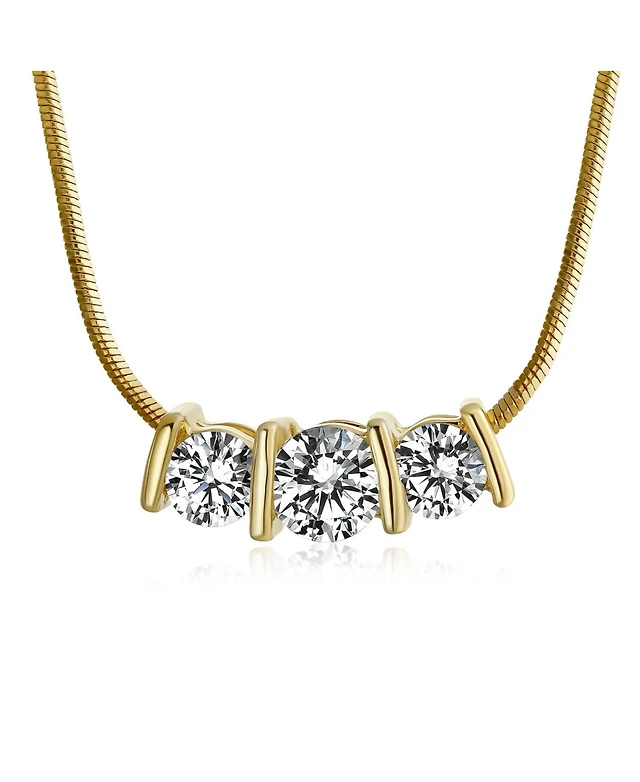 Bling Jewelry 3 Stone Cz Past Present Future Solitaire Cubic Zirconia Necklace