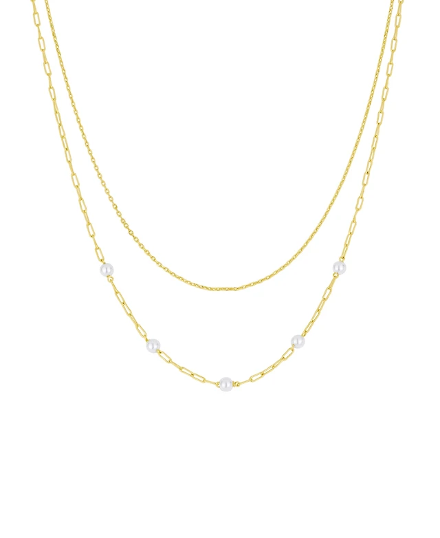 Genevive Sterling Silver 14K Gold Plated with Genuine Freshwater Pearl Curvy Pendant Necklace