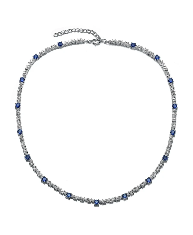 Cubic Zirconia Sterling Silver White Gold Plated Evening Necklace