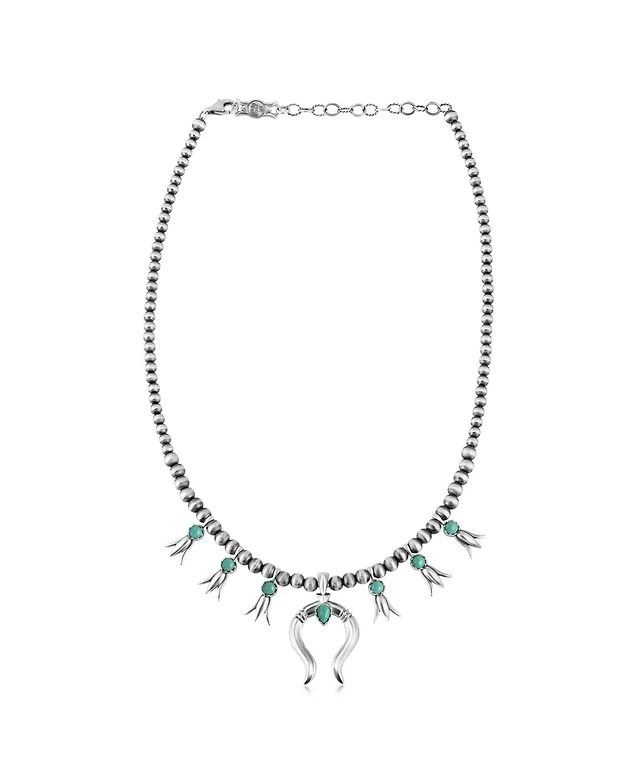 American West Jewelry Sterling Silver Ruby Zoisite Oval Squash Blossom Necklace, 17 to 20 Inches
