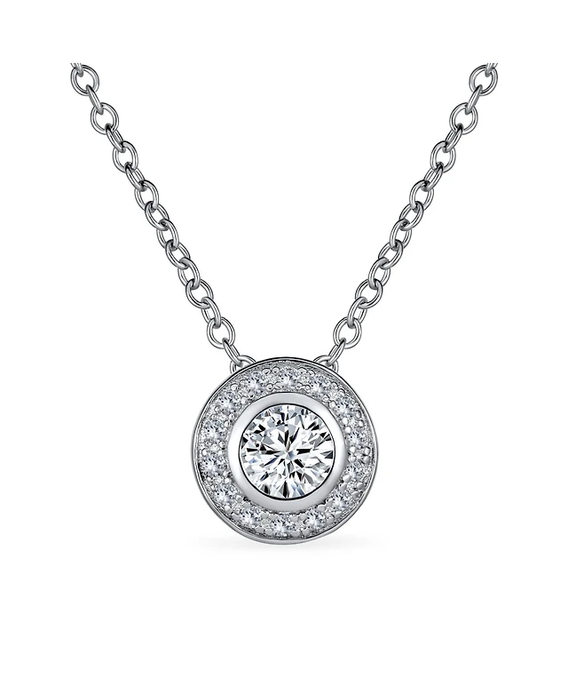 Bling Jewelry Classic Art Deco Style Cz Halo Circle Circlet Rosette Solitaire Pendant Cubic Zirconia Sterling Silver