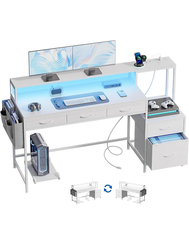 gaomon Wpond Vanity Desk, Makeup Vanity with Led Mirror& Charging Station, Dressing Table