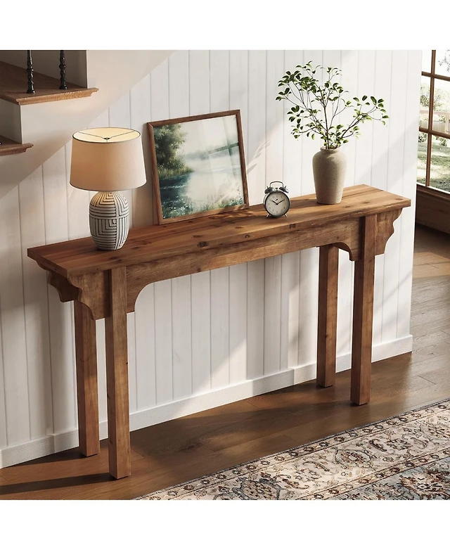 Tribesigns 63" Console Table, Farmhouse 2-Tier Entryway Table with U-Shaped Base, Narrow Long Wood Sofa Table Behind Couch Table