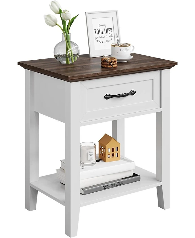 Gouun 2 Tier Slim Nightstand Bedside Table with Drawer Shelf