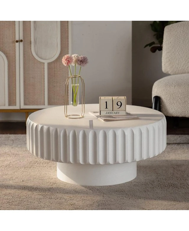 Rainsken Modern Circular Coffee Table, 29.53" Center Table with Pedestal, Round Stripe and Concealed Storage for Living Room