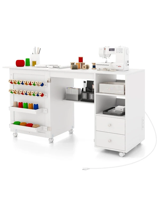 Aheaplus End Table with Charge Station, Mini Fridge Strand Storage Drawers and Rolling Cabinet