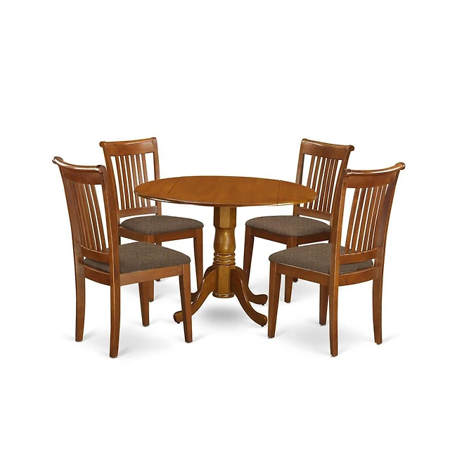 East West Furniture 5 Pc Dining Room Table Set - Oak Dropleaf Dining Room Table and 4 Oak Wooden Dining Chairs with Slatted Back - Oak Finish