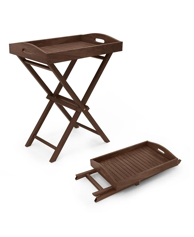 Slickblue Folding Picnic Table Acacia Wood Dining Table with Metal Frame for Indoor Outdoor Activities