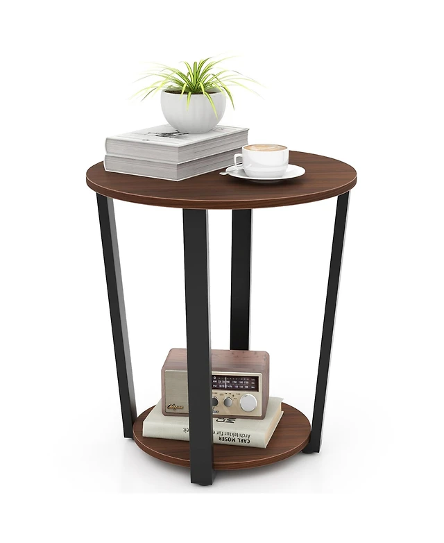 Gymax Industrial End Table Sofa Side Table Nightstand w/ Storage Shelf & Metal Frame