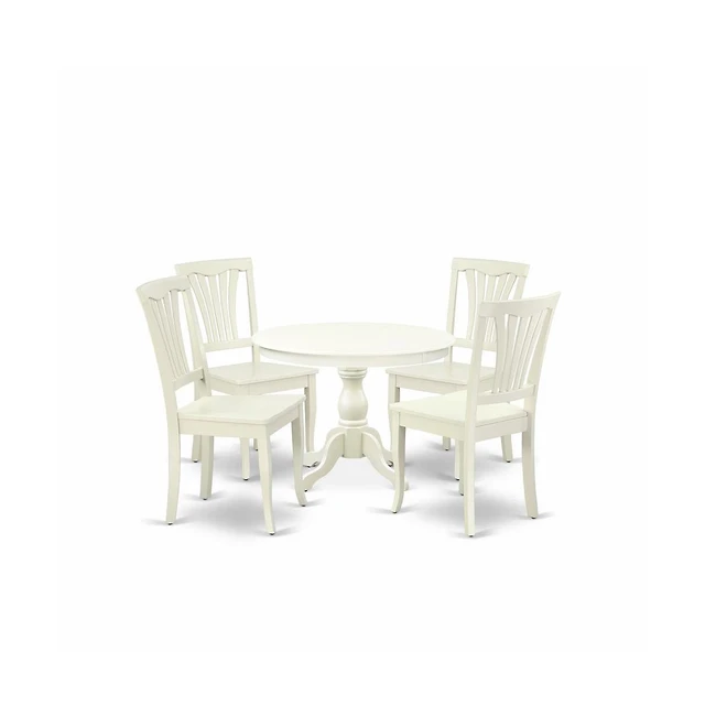 East West Furniture 5 Piece Dining Table Set - Linen White Dining Room Table and 4 Linen White Wooden Dining Chairs with Slatted Back