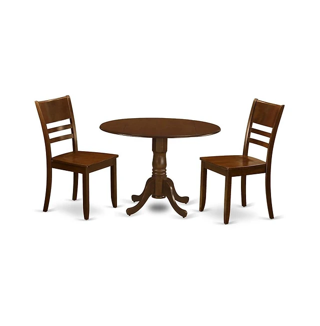 East West Furniture 3 Piece Wood Dining Table Set Contains 1 Drop Leaves Dining Room Table and 2 Mahogany Dining Chairs with Double X-Back