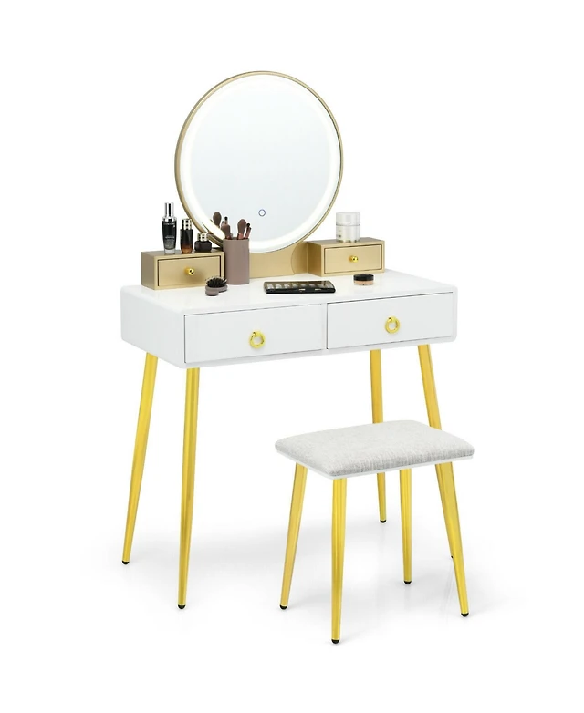 Tribesigns Gold Round End Table: 2 Tiers Side Table Set of 2 with Storage Shelf, Modern White Gold Bedside Nightstand, Metal Faux Marble Accent Table