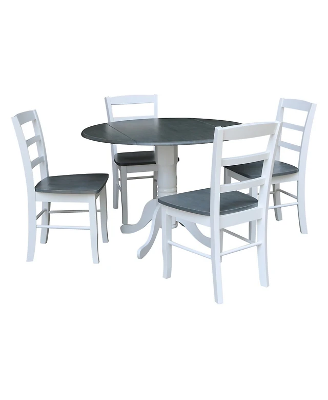 Roundhill Furniture Amoa 5-Pc Dining Set, White Round Dining Table with 4 Chairs, Green