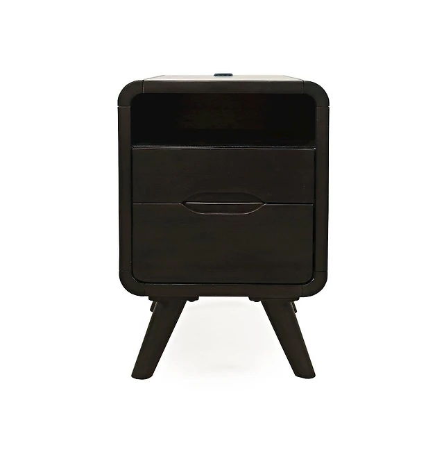 Kings Brand Furniture Slim Wood Side End Table with Storage Shelves & Pull-Out Tray, Nightstand for Bedroom, Living Room