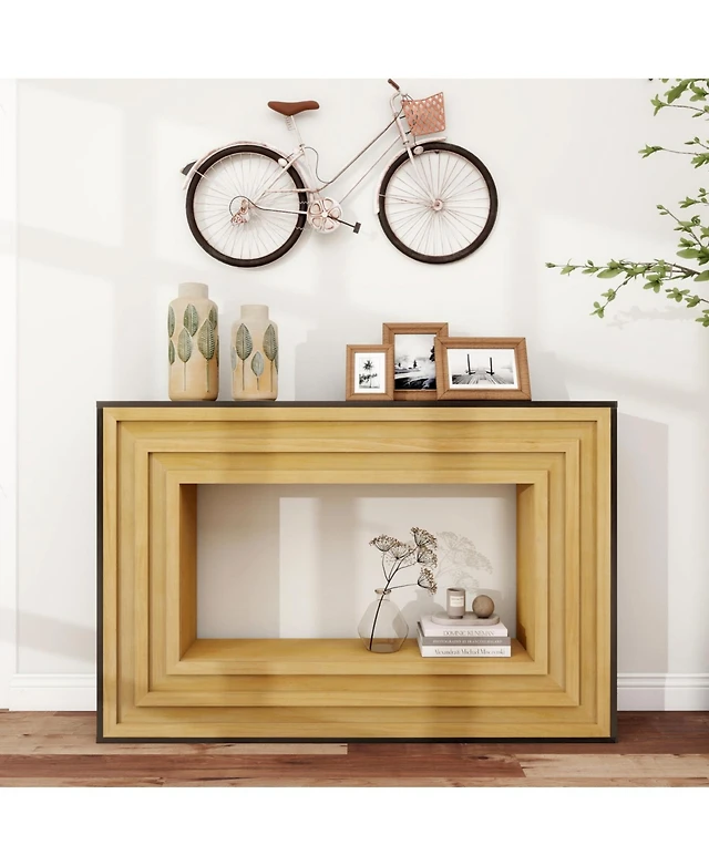 Console Table with Open Shelf Gold Metal Frame Living Room Hallway-White