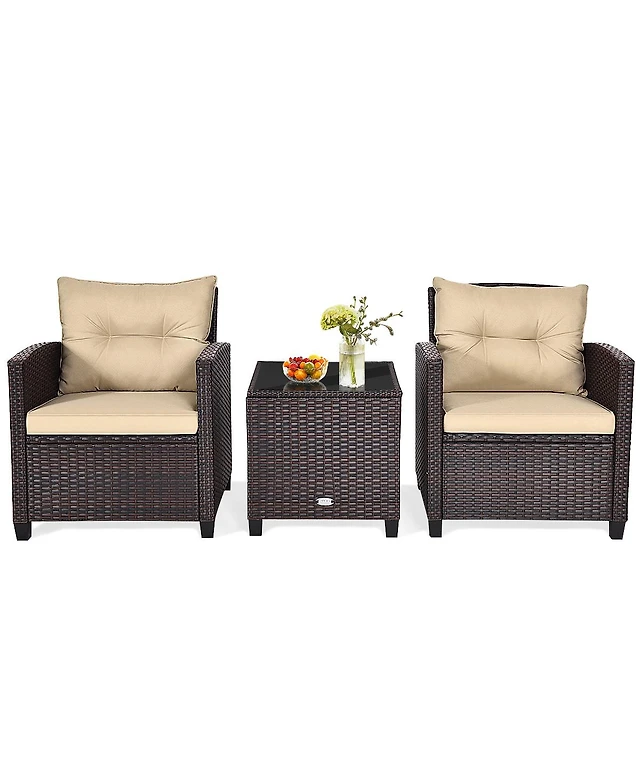 Gymax 3PCS Patio Rattan Outdoor Furniture Set w/ Cushioned Sofa Coffee Table
