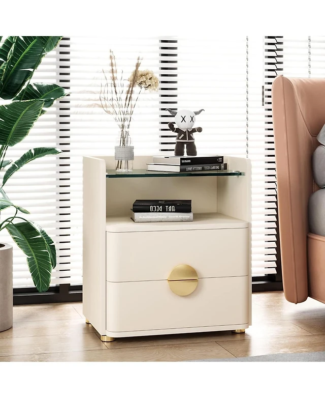 Tribesigns 2-Drawer Modern Nightstand with Open Storage Space and Gold Round Metal Legs,Wood Bed Side Table for Bedroom,Living Room