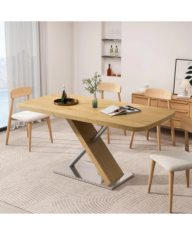 East West Furniture 6-Piece Stylish Rectangular Dining Room Table Set a Great Distressed Jacobean rectangular Table Top and Distressed Jacobean Indoor