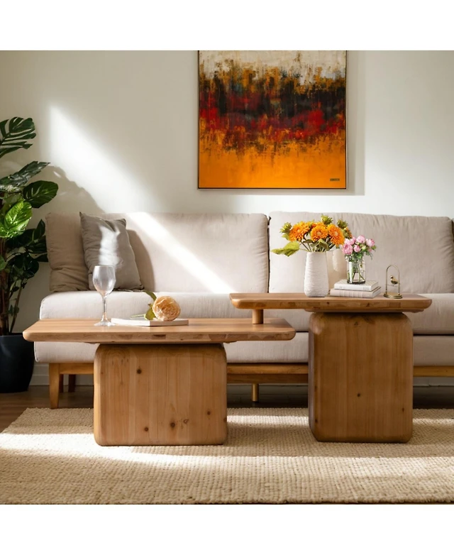 Alaterre Furniture Claremont Rustic Wood Nesting End Tables Set