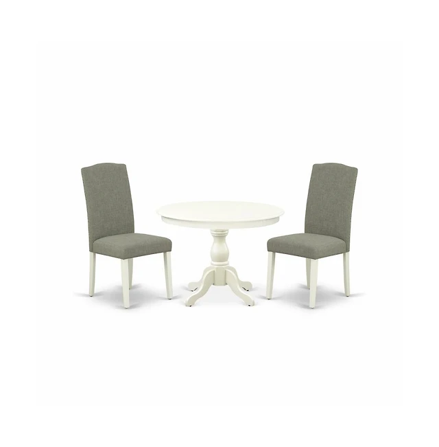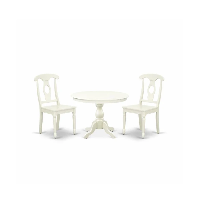 East West Furniture 3-Pc Dining Room Table Set- 2 Wooden Chairs with Wooden Seat and Slatted Chair Back - Drop Leaves Kitchen Table