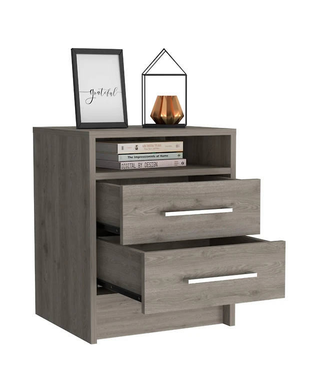 Gymax Set of 2 3Tier Nightstand Bedside Side End Table w/Double Shelves Drawer