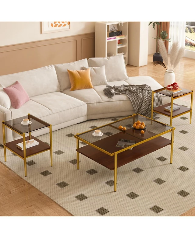 Gouun 2 Pieces 3-tier Nightstand Sofa Side End Accent Table Storage Display Shelf