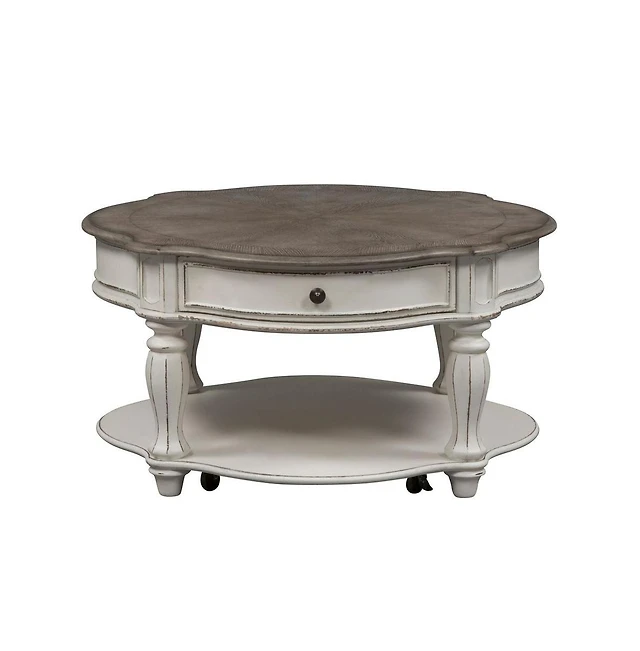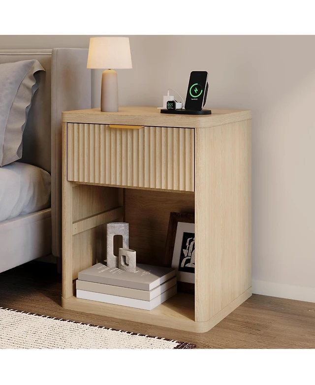 Rainsken 17" Round Led Mirror Vanity Desk Cushion Stool Suit, Dressing Table with 2 Drawers, 3 Open Shelves for Bedroom