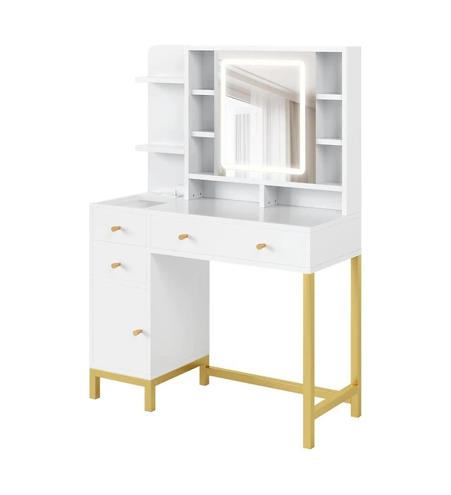 Gaomon White Led Lighted Vanity Desk, Makeup Table with Built-in Power & Usb Charging Ports