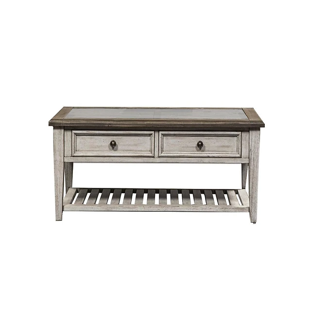 Streamdale Furniture Carved Wood Coffee Table - Ornate Side Panels