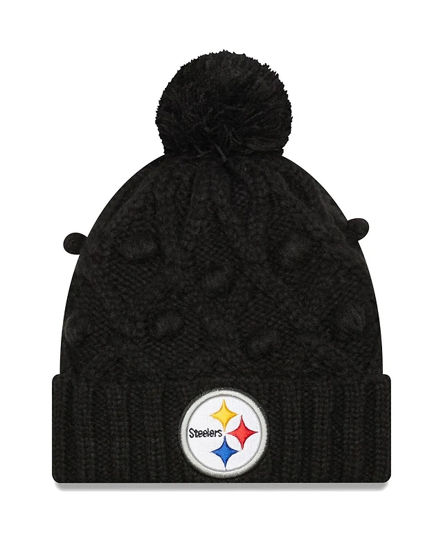 Big Girls New Era Black Pittsburgh Steelers Toasty Cuffed Knit Hat with Pom