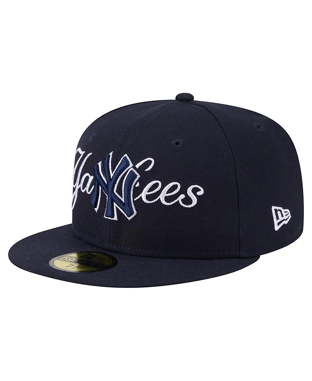 New Era Men's Navy York Yankees Overlap 59FIFTY Fitted Hat