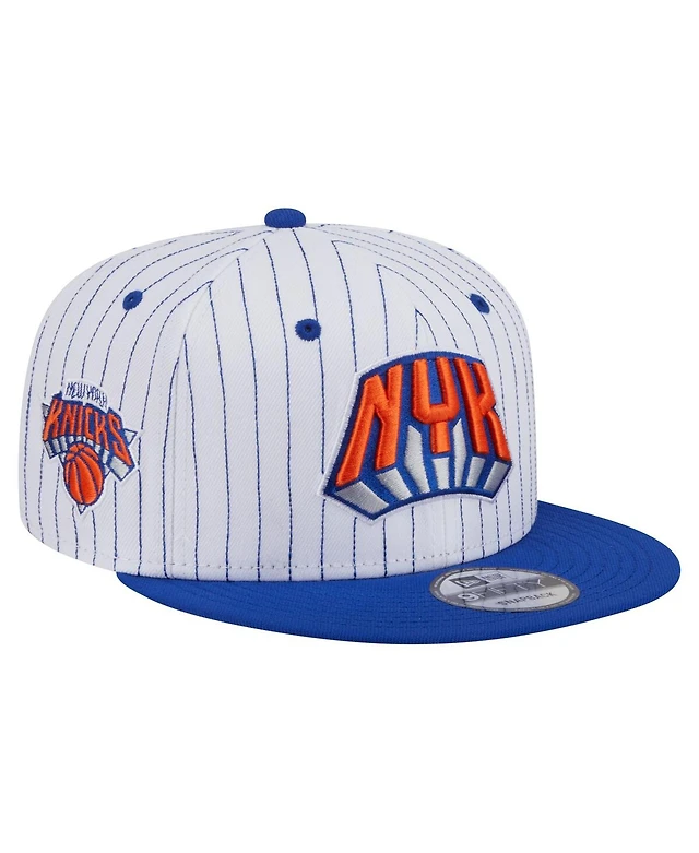 New Era Men's White/Blue New York Knicks Deceptor Pinstripe 9FIFTY Snapback Hat