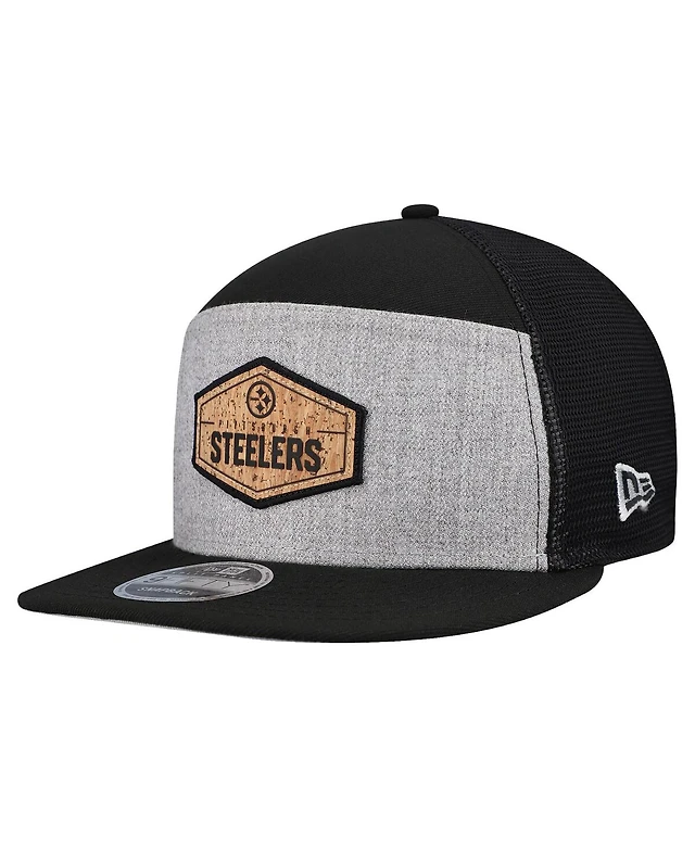 New Era Men's Gray/Black Pittsburgh Steelers Cork Split Panel 9FIFTY Trucker Snapback Hat
