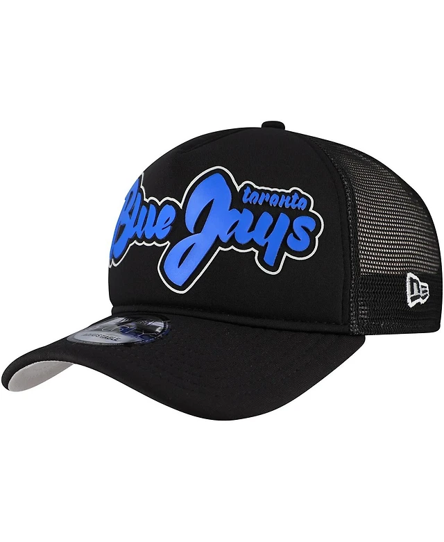 New Era Men's Black Toronto Blue Jays Retro Bold A-Frame Trucker 9FORTY Adjustable Hat