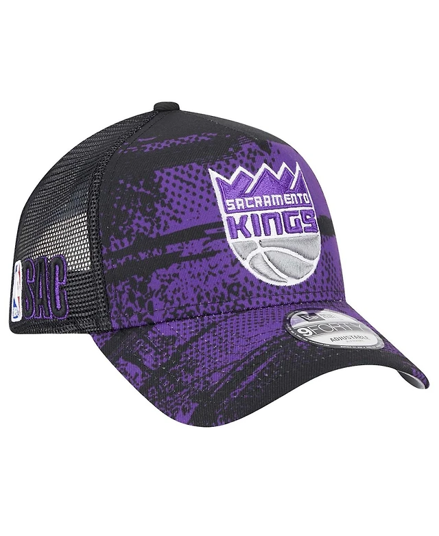 New Era Men's Black/Purple Sacramento Kings Tip Off A-Frame Trucker 9FORTY Adjustable Hat