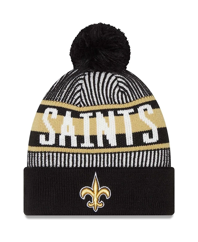 New Era Men's Black New Orleans Saints Striped Cuffed with Pom Knit Hat