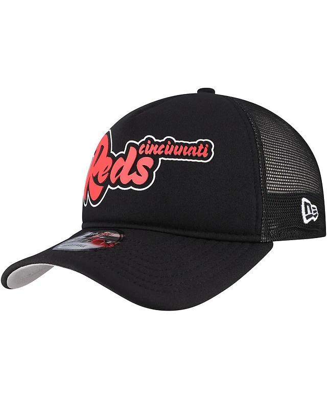 New Era Men's Black Cincinnati Reds Retro Bold A-Frame Trucker 9FORTY Adjustable Hat