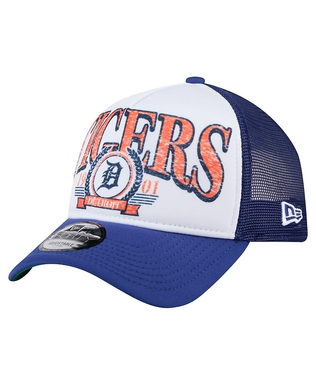 New Era Men's White/Navy Detroit Tigers Distressed 9FORTY A-Frame Adjustable Trucker Hat