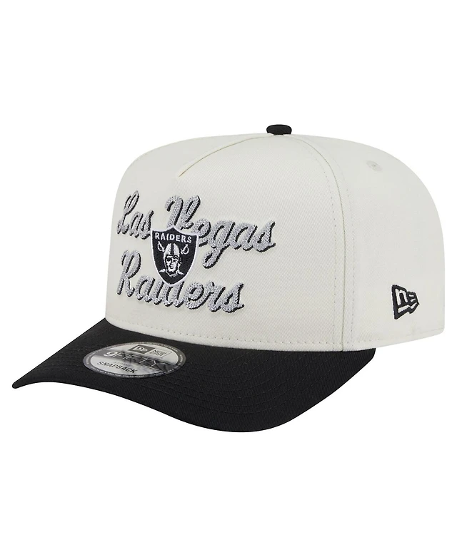 New Era Men's Cream/Black Las Vegas Raiders Chainstitch A-Frame 9FIFTY Adjustable Hat