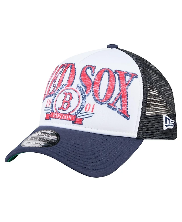 New Era Men's Navy Boston Red Sox Distressed 9FORTY A-Frame Adjustable Trucker Hat