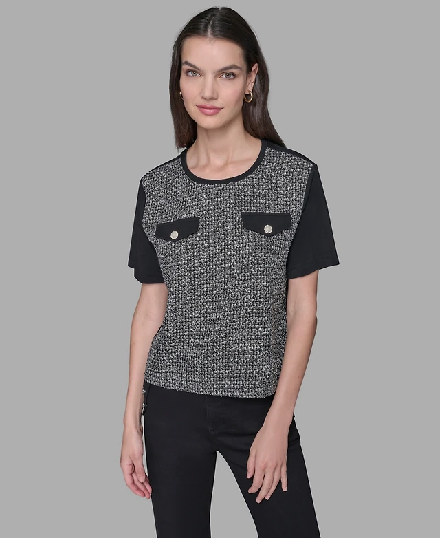 Donna Karan New York Women's Long Sleeve Double Bar Hardware Top
