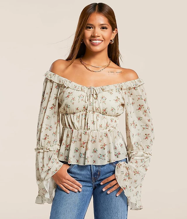 Levi's Women's Gianna Long Sleeve Ruffle Trim Blouse